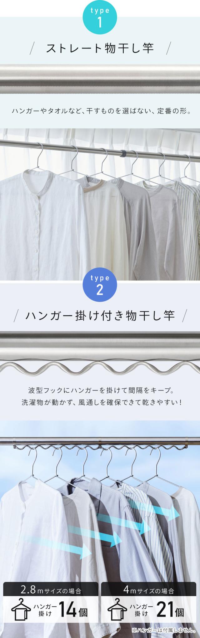 間隔を保って乾きやすい!ハンガー掛け付き物干し竿/シンプルで使いやすい!ストレート物干し竿