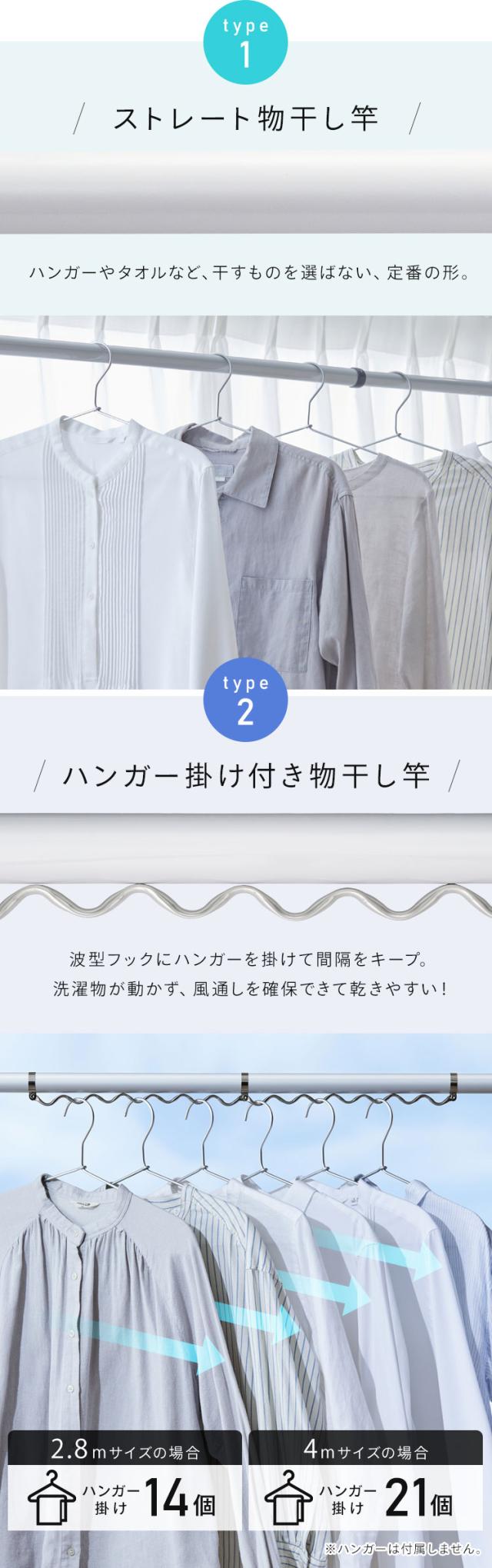間隔を保って乾きやすい!ハンガー掛け付き物干し竿/シンプルで使いやすい!ストレート物干し竿
