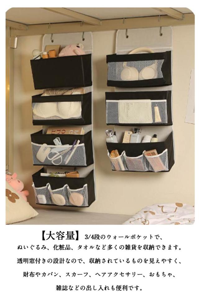 | 【省スペース】壁やドアに掛けて、部屋の空間を活用できるバッグや小物の収納ラック。 【大容量】3/4段のウォールポケットで、ぬいぐるみ、化粧品、タオルなど多くの雑貨を収納できます。透明窓付きの設計なので、収納されているものを見えやすく、財布やカバン、スカーフ、ヘアアクセサリー、おもちゃ、雑誌などの出し入れも便利です。 【穴あけ不要 賃貸もOK】ドア掛けフックと粘着フック付き、ドアの後ろやワードローブの後ろなどどこにでも取り付けることができます。書斎、寝室、リビング、キッズルーム、バスルーム、保育園、オフィス、作業場など、小物の整理整頓に便利です。 【折りたたみ式で保管に便利】使わない時はコンパクトに折り畳めるので、収納場所をとらず、部屋のスペースを最大限に活用することができます。 | |
