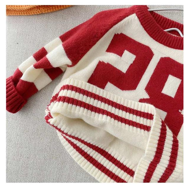 トレーナー 配色 赤ちゃん 子供 トレーナー キッズ スウェット セーター ナンバリング ロゴ ベビー 長袖 クルーネック 女の子 男の子 子供服