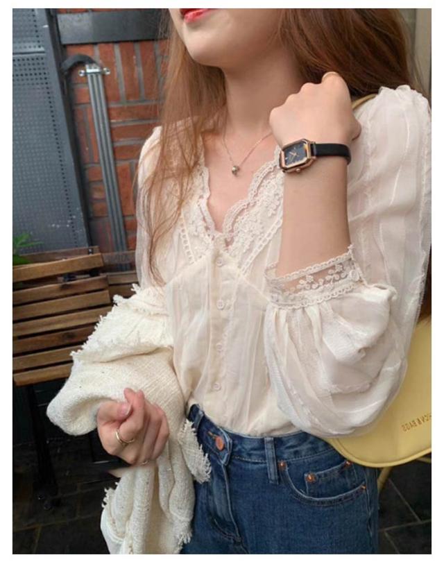 | 襟と袖口に可愛らしいレースをあしらったチュールブラウスです。 さらっとした肌触りで着心地も◎ 1枚ではもちろん、カーディガンやジャケット、ジャンスカとレイヤードしてレースをちらりとのぞかせた着こなしもオススメです。 | |
