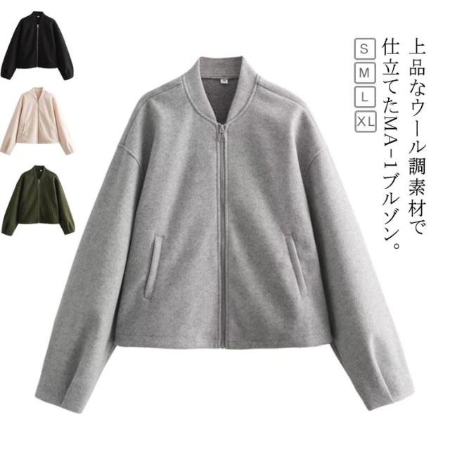 ノーカラージャケット 秋 アウター レディース ブルゾン 冬 MA-1 ジャンパー 防寒 厚手 秋冬 暖かい 軽い ブルゾン ショート丈 あったか ウール調 MA-1 ミリタリー ジャケット ma-1 大きいサイズ きれいめ カジュアル