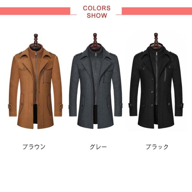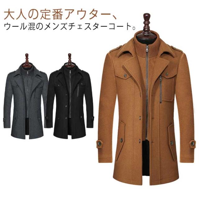 メンズ 通勤 ウールコート ビジネスコート ウール入り ダブル襟 ライナー付き メルトンコート 防寒 コート 紳士 アウター 防風 ハーフコート 大きサイズ 秋冬 2重構造 M-5XL