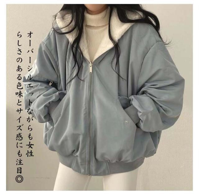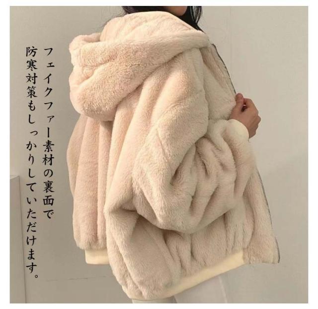 ボアブルゾン ふわふわ リバーシブル レディース ボアジャケット 中綿コート ファージャケット 2way アウター 裏起毛 体型カバー 裏ボア 冬服 もこもこ あったか 暖かい 長袖 フード付き ショート丈 コート かわいい プレゼント ギフト