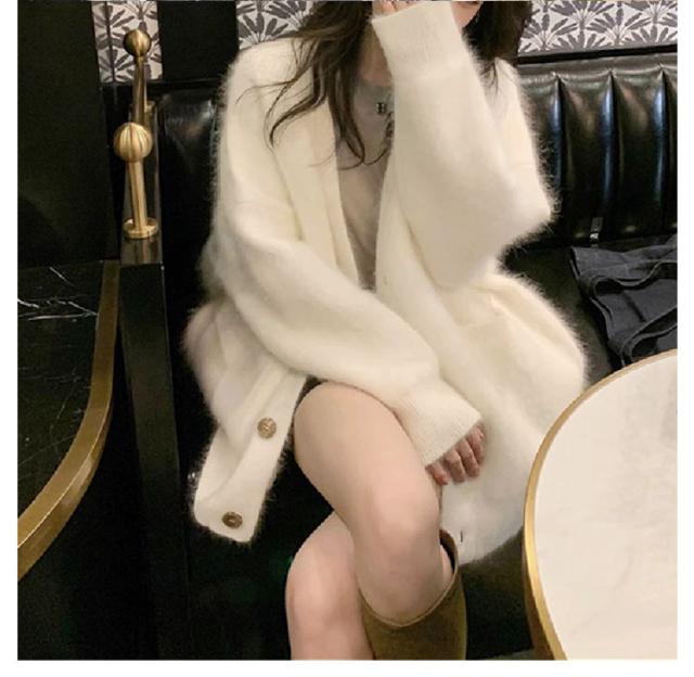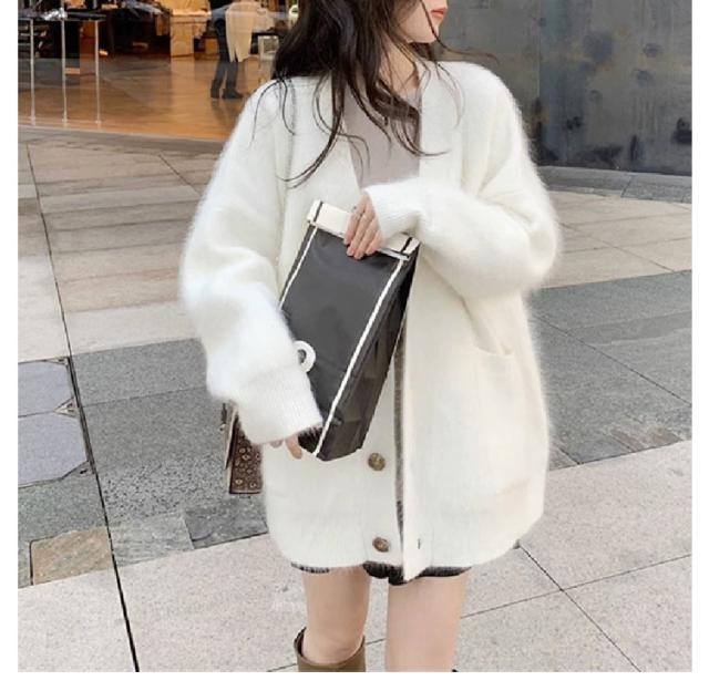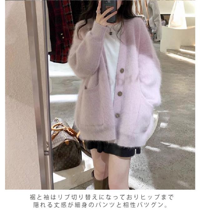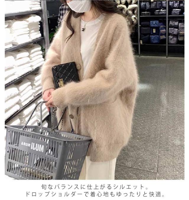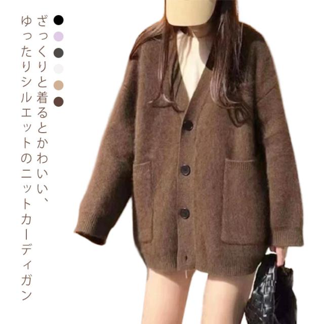 ニットカーディガン アウター 羽織 ニット 防寒 コート モコモコ Vネック 前開き ニット 秋冬 冬服 ふわふわ 重ね着 カーディガン 暖かい 冷房対策 レディース 無地 柔らか きれいめ ゆったり カジュアル シンプル トップス 可愛い ギフト