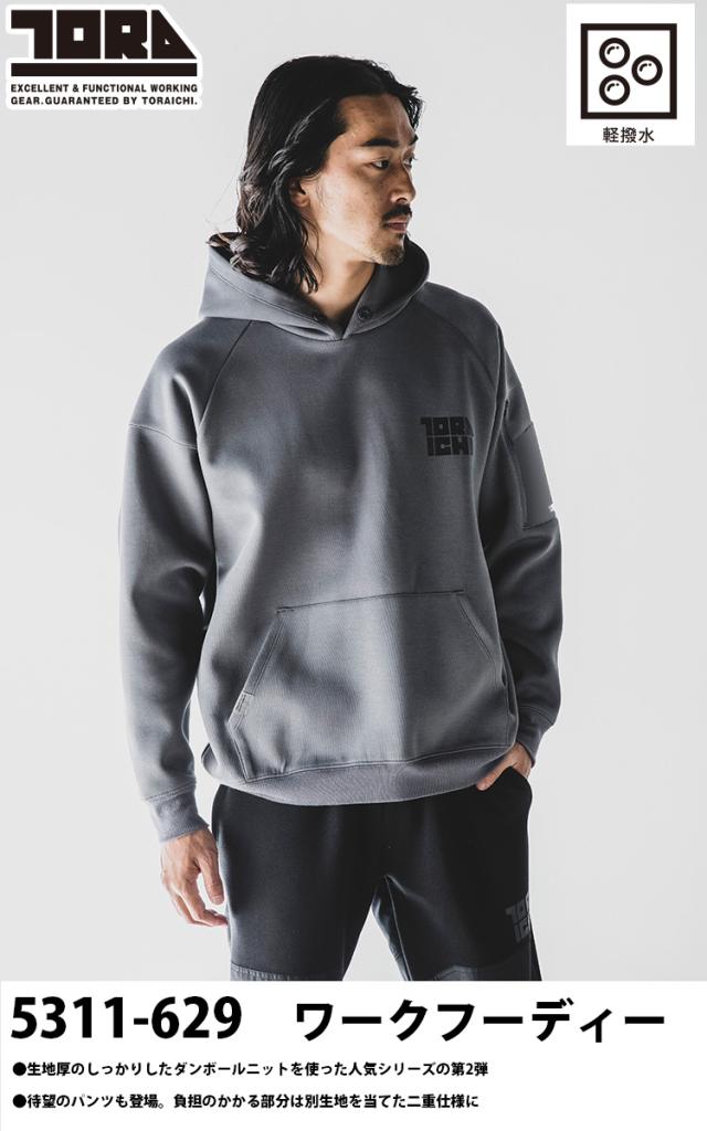 2024年秋冬新作 寅壱 5311-629 ワークフーディー TORAICHI 上着 ワークトレーナー ストレッチ 生地厚 保温 ダンボールニット メンズ キャンプ 山登り カジュアル ワークユニフォーム 土木 工事 M~XL 作業服 作業着かっこいい おしゃれ
