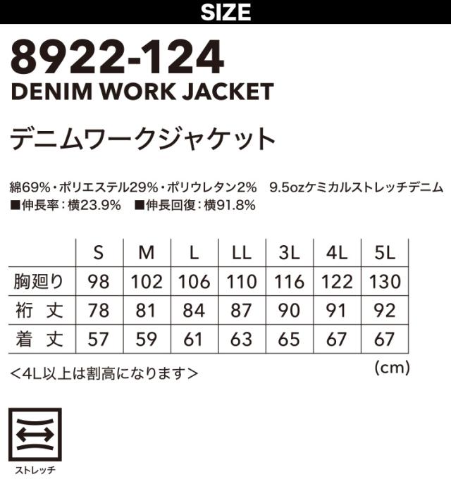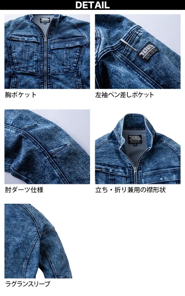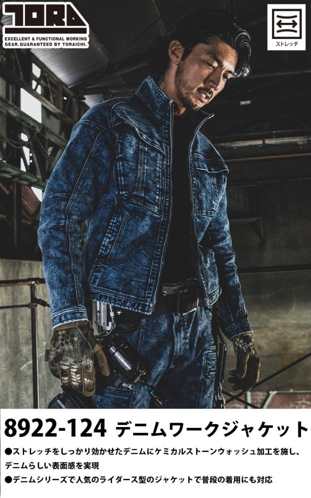 2024年秋冬新作 寅壱 8922-124 デニムワークジャケット TORAICHI 上着 デニム ストレッチ ケミカルウォッシュ ライダース型 メンズ カジュアル ワークユニフォーム S~5L 作業服 作業着かっこいい おしゃれ