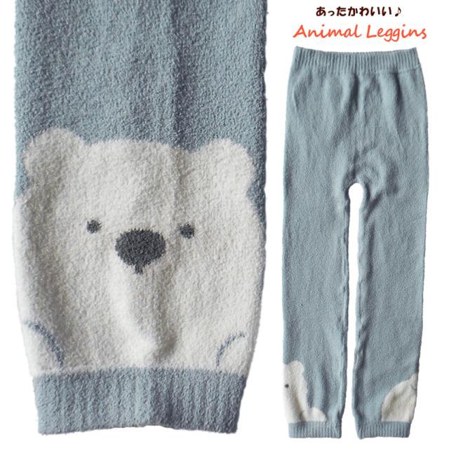 送料無料 レギンス あったか スパッツ しろくま シロクマ 白熊 北極熊 ひょっこり 水色 9分丈 インナー パンツ ぬくぬくももひき もちもち モール 毛糸のパンツ 冷え性 防寒 かわいい ゆめかわ くすみカラー おうち時間 部屋着 ヒートテック効果