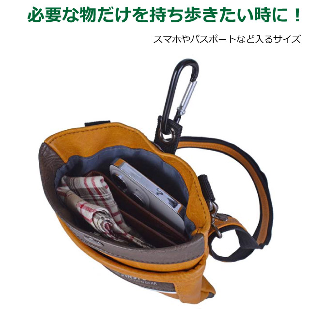 ![]() ![]() ![]() ![]() ![]() ![]() ![]() ・FIRST DOWN-EX ファーストダウンEX 雰囲気のある合皮を使用したショルダーバッグ。消臭ネーム付き。 軽量・薄型なのでちょっとしたお出かけや旅行にもおすすめです。 本体背面はベルトに通せるループと、脱着可能なカラビナ付きの3way仕様。シーンに合わせてお使いいただけます。