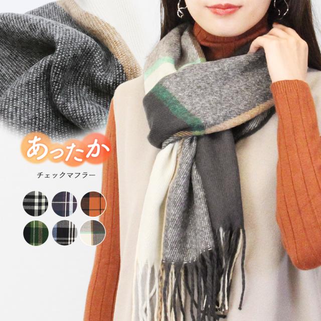 秋冬のコーデに欠かせない チェック柄マフラーです。