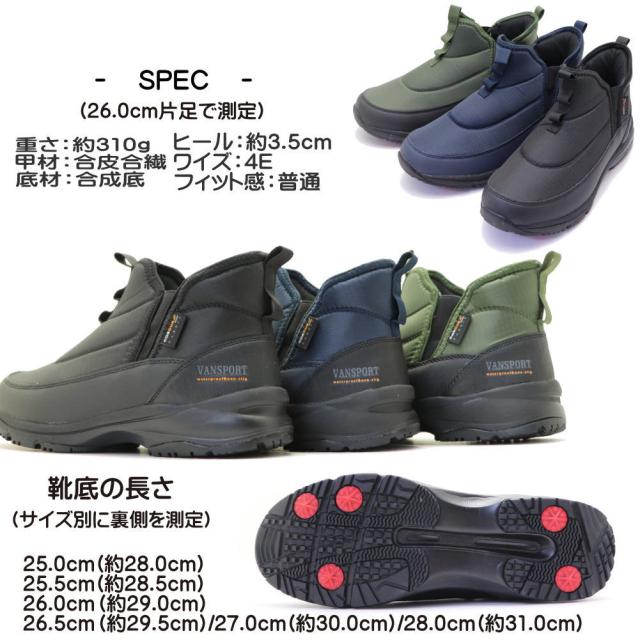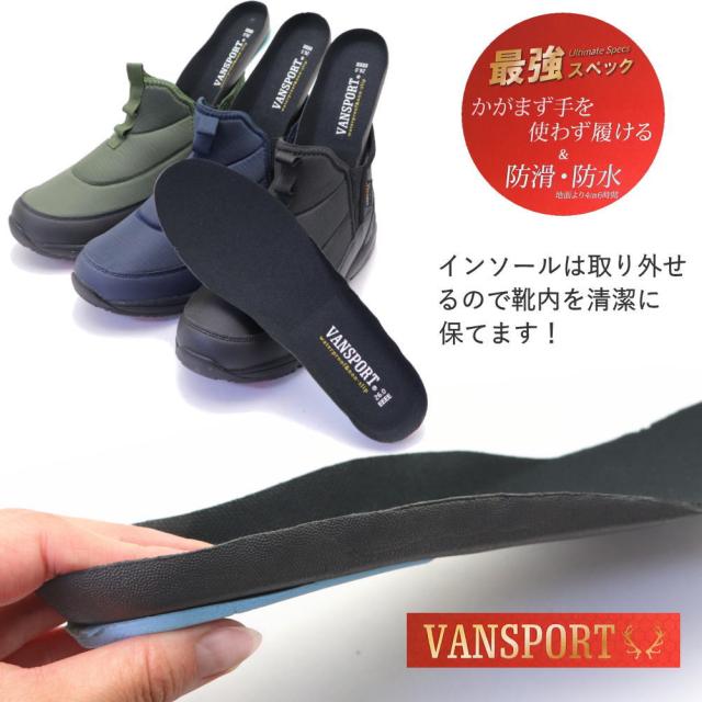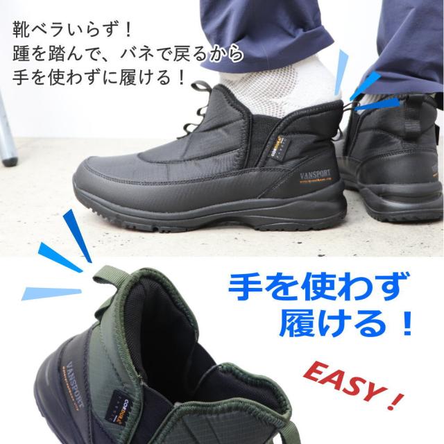 手を使わず履ける メンズ 防水 防滑 ブーツ ナイロンブーツ スニーカーブーツ 幅広 4E VANSPORTS ヴァンスポーツ No.2002