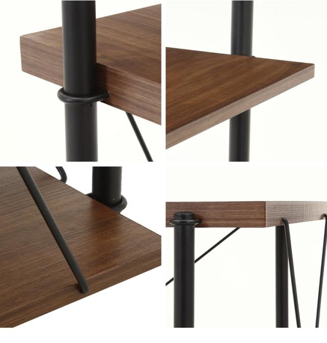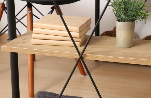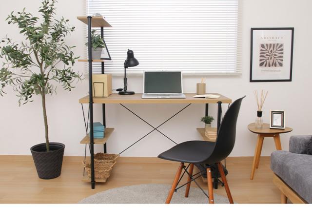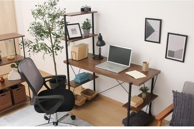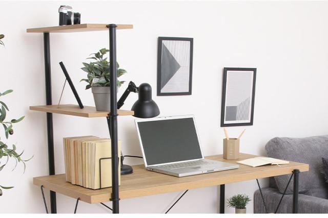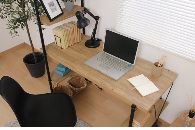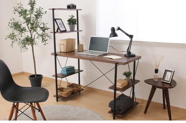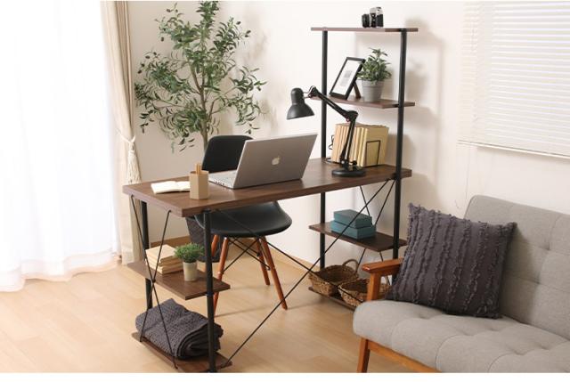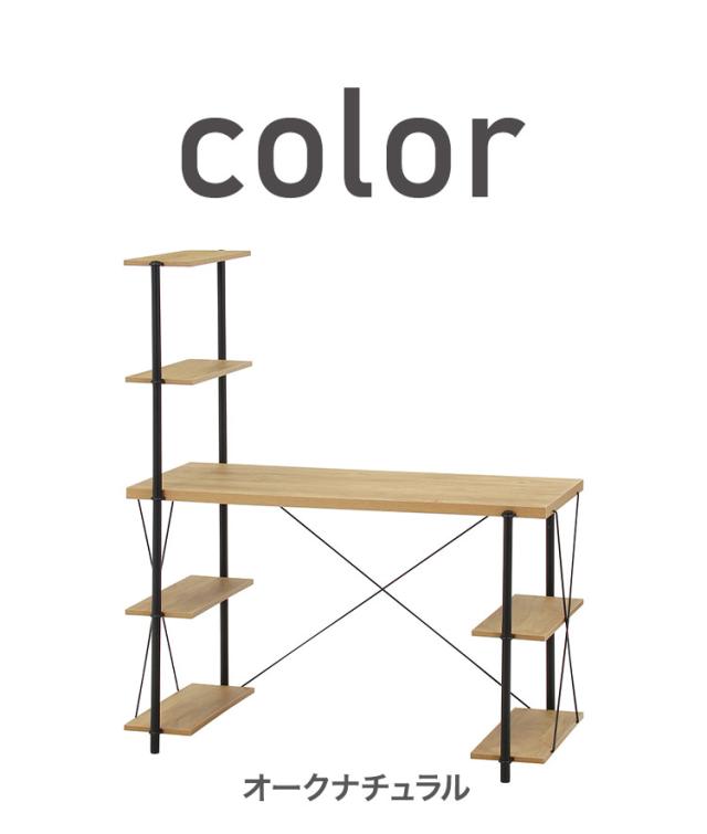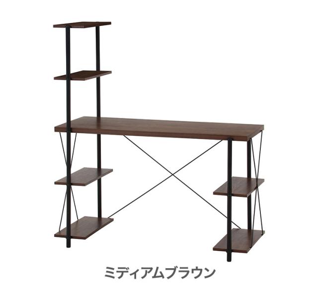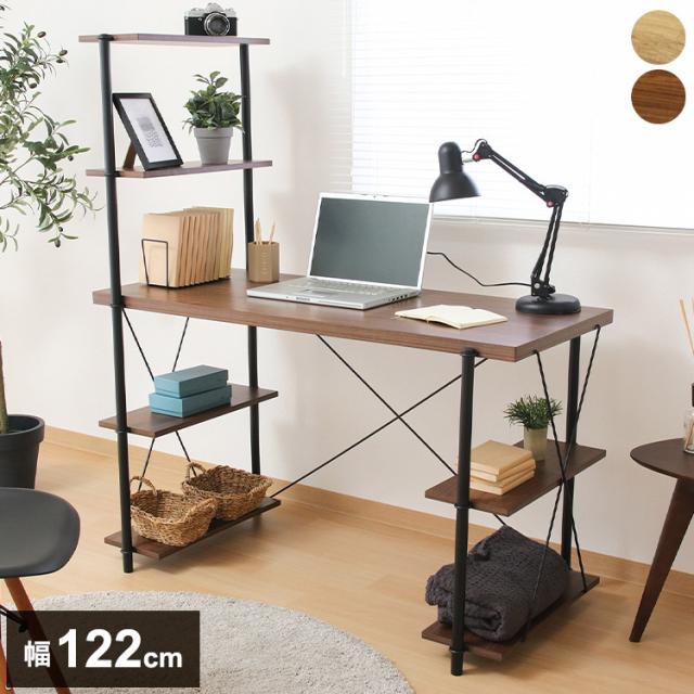 ワイヤー片袖デスク ラック付き 幅122cm 勉強机 棚付き パソコンデスク オープンラック 作業机 本棚 ラック デスク 作業台 木目調 リビング ワンルーム オフィス リモートワーク(代引不可)【