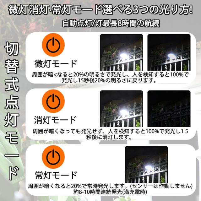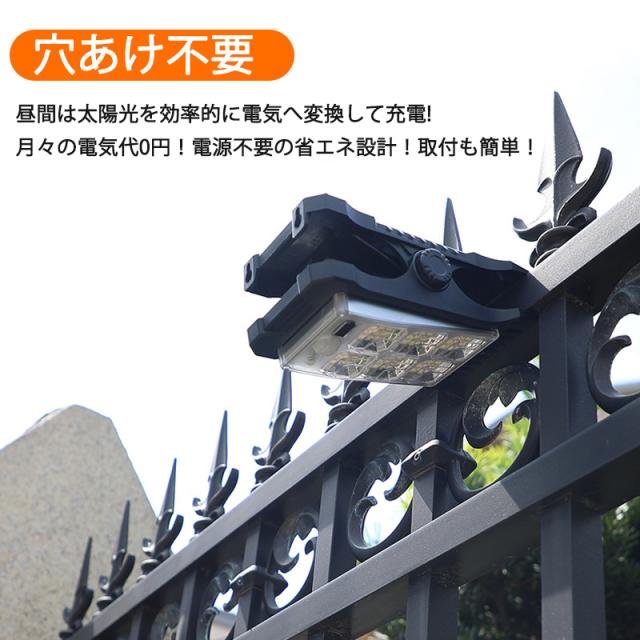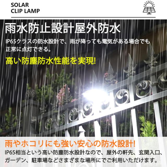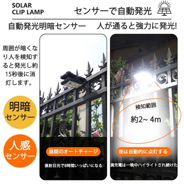 2個セット ソーラーライト 屋外 ガーデンライト センサーライト led 防水 人感センサー クリップ式 超大バッテリ容量 壁 フェンス 駐車場 防犯