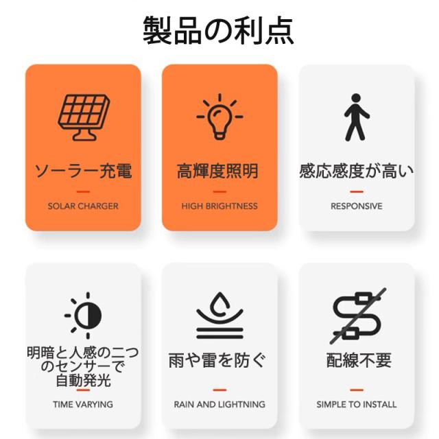 ★昼間はソーラーパネルで太陽光を効率的に充電!夜間は人感センサーで自動発光!
