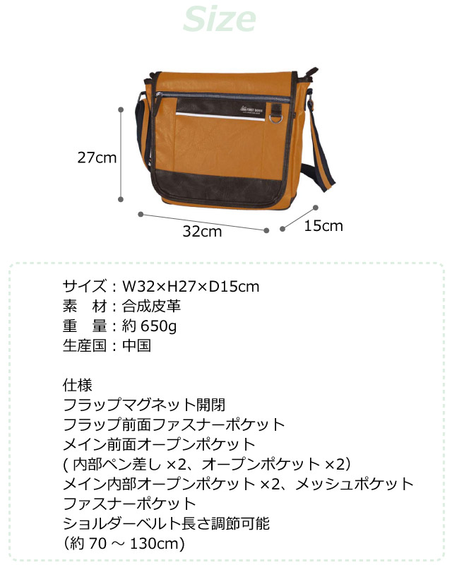 ![]() ![]() ![]() ![]() ![]() ![]() ![]() ・FIRST DOWN-EX ファーストダウンEX 雰囲気のある合皮を使用したショルダーバッグ。消臭ネーム付き。 A4サイズ対応なので通勤・通学・通塾にもおすすめです。 メインルームにポケットが4つあり、小物を分けて収納可能。フロントには便利なポケット付き。