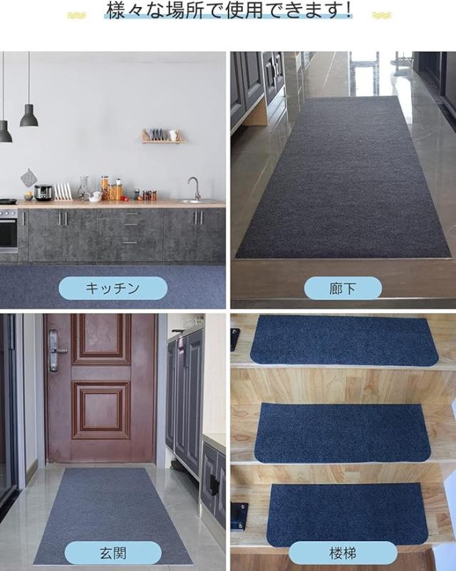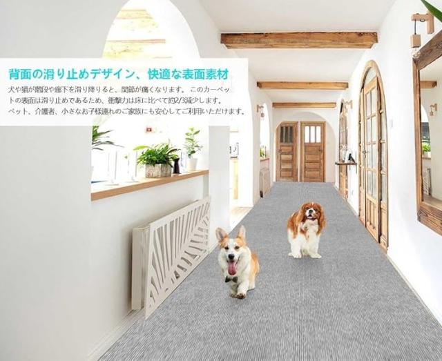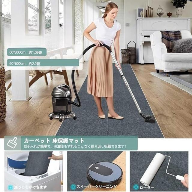 フローリングマットカーペット 洗える廊下敷き 階段マット グレー 約60*300cm 滑り止め キッチンマット 足腰負担軽減 キズ防止 騒音対策