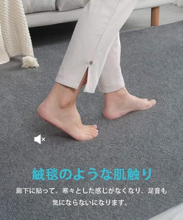廊下用マットの表面は、柔らかく、足にやさしい素材でできています。そのため、踏み心地がとても心地よく、足が疲れにくくなります。