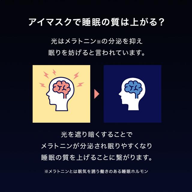 光を遮り暗くすることでメラトニンが分泌され眠りやすくなり睡眠の質を上げることに繋がります。