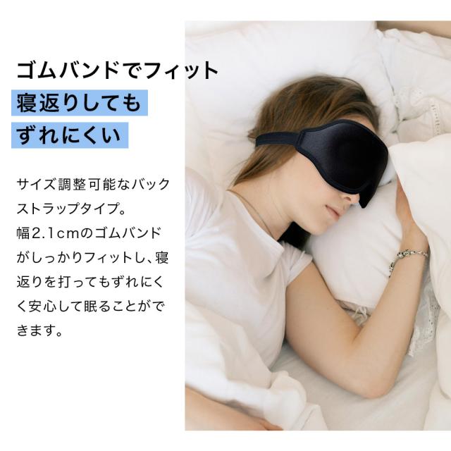 幅2.1cmのゴムバンドがしっかりフィットし、寝返りを打ってもずれにくく安心して眠ることができます。