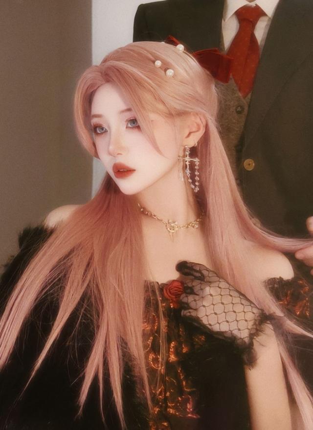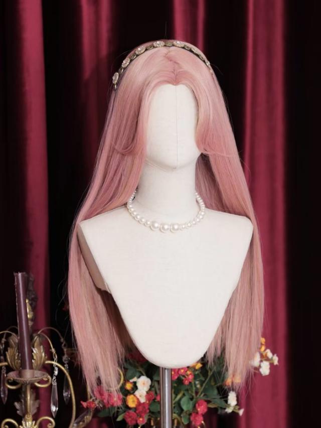 中世の貴族風 ストレート ピンク髪 フルウィッグ かつら 女性 長髪 ロングウィッグ ロングヘア ロリータ lolita 前髪あり 自然 可愛い wig コスプレ 耐熱ウィッグ 小顔効果 コスチューム 仮装 文化祭 学園祭 演劇 舞台 イベント 変装 女装 dp240x1x1x7xq dp240x1