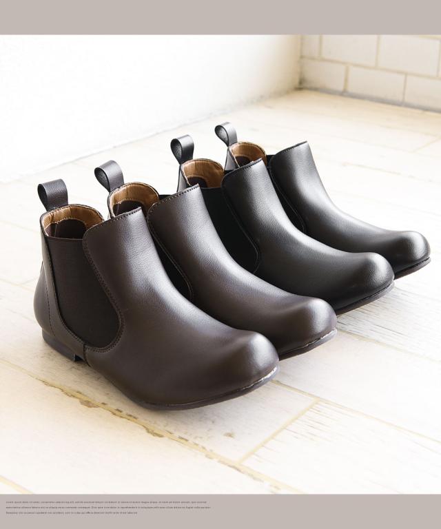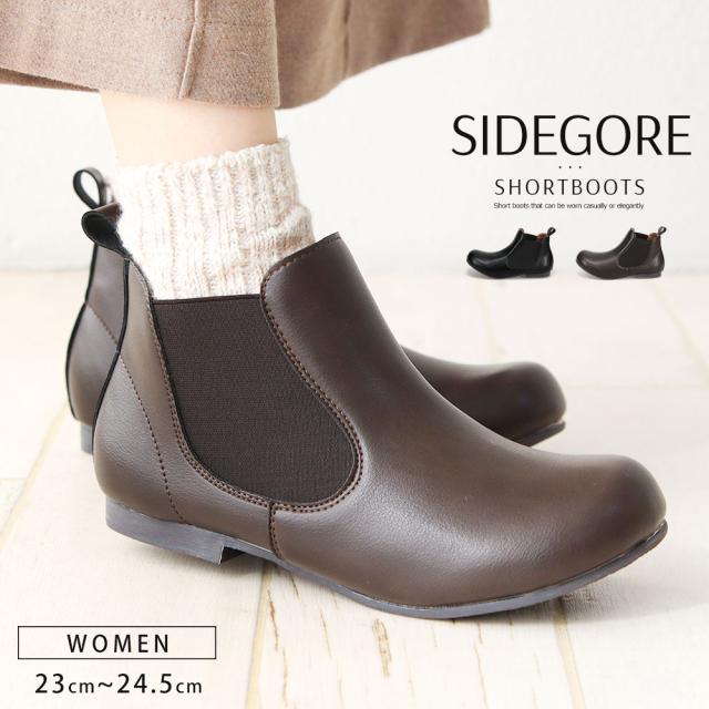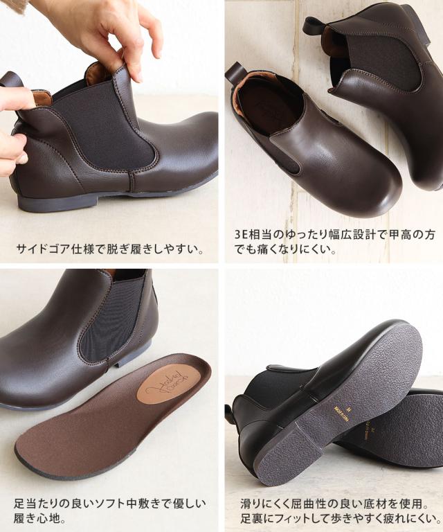 サイドゴアブーツ レディース 3E ショートブーツ レディース 歩きやすい 痛くない ローヒール ぺたんこ フラットソール 幅広 軽量 秋 冬 カジュアル カジュアル 大きいサイズ 小さいサイズ チェルシーブーツ 靴 ブーツ ハッシュドコーデ 黒 ブラック ダークブラウン 4368