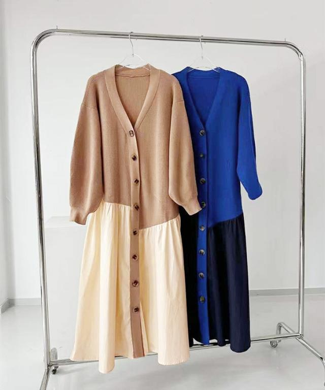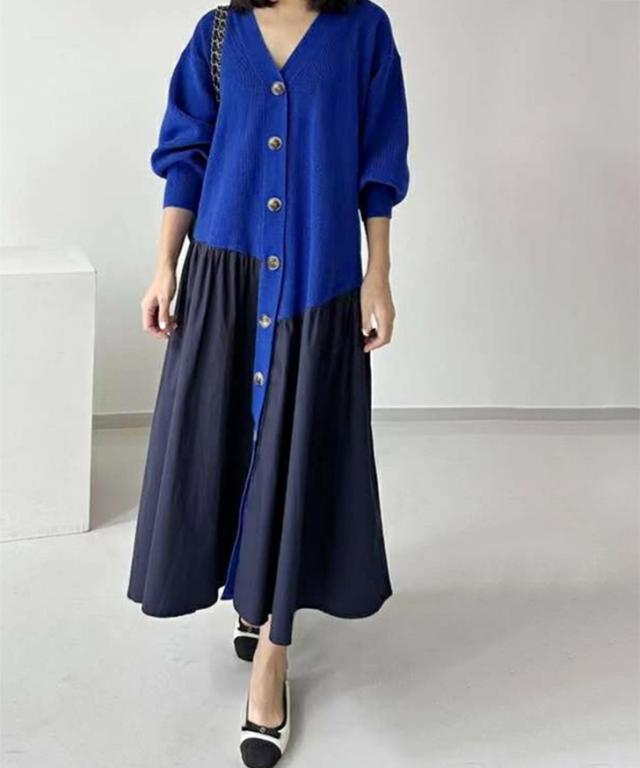 新作 ワンピース レディース カーディガン 秋 春 冬 長袖 ロング きれいめ ニット シャツ Vネック フレア 体型カバー マキシ 大きいサイズ