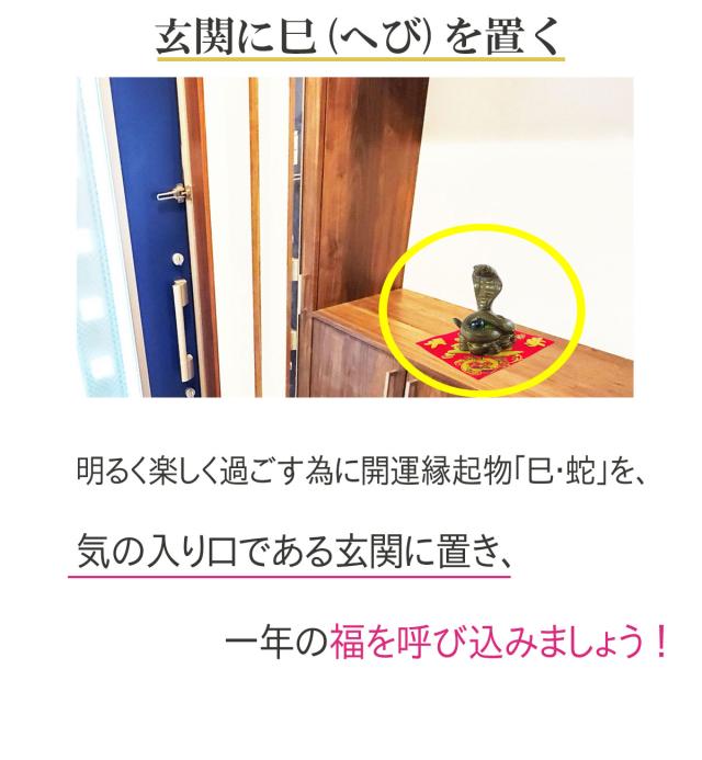 明るく楽しく過ごすために開運縁起物「巳・蛇」を置き、一年の福を呼び込みましょう♪
