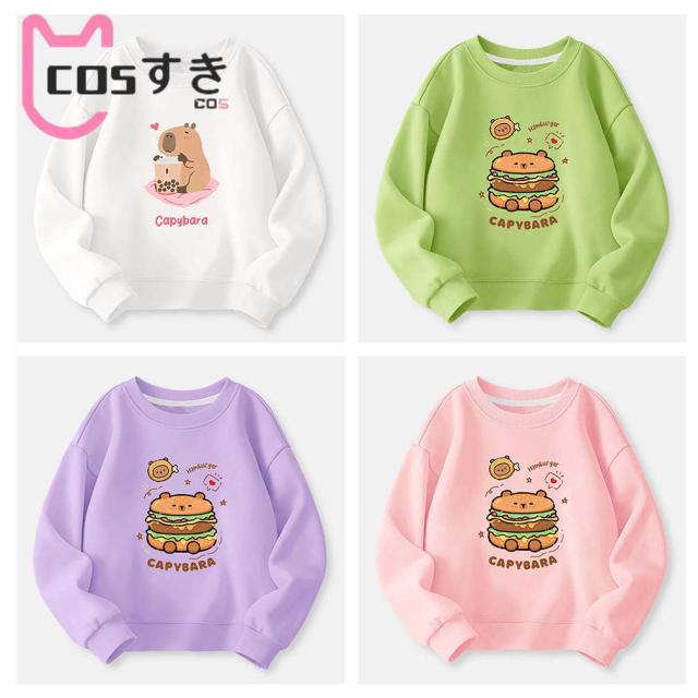 カピバラ トレーナー 長袖Tシャツ スウェット トップス 長袖 子供 キッズ 春秋冬 可愛い プレゼント ギフト