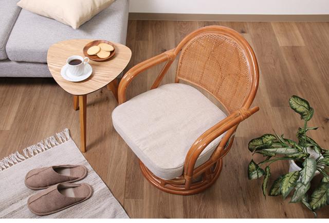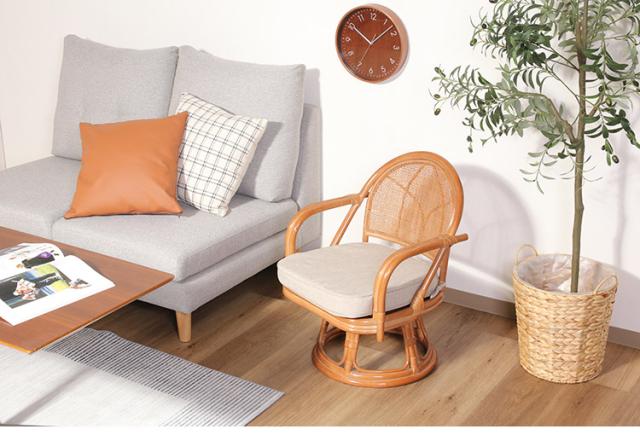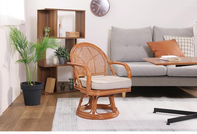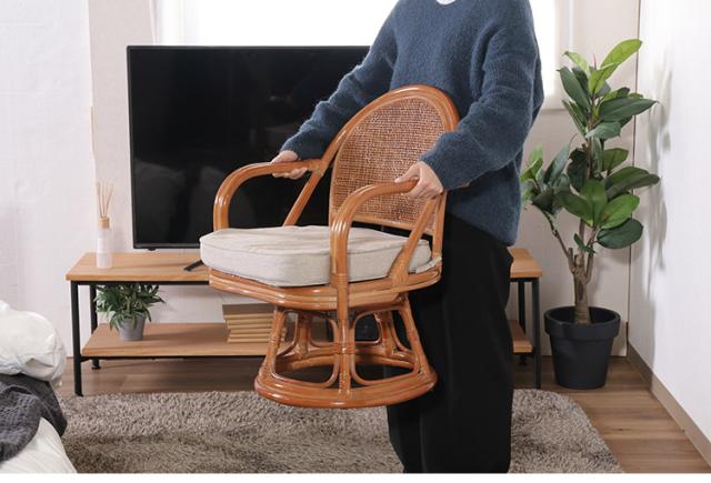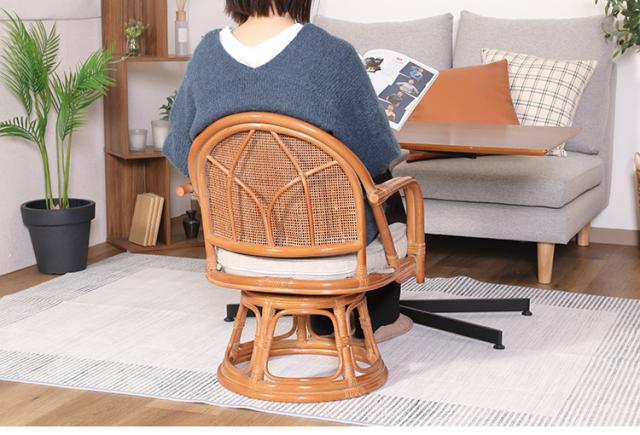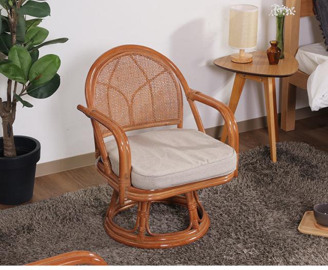 回転チェア ラタンチェア ミドルタイプ LBR 籐椅子 肘掛け付き 籐家具 回転 リビング 寝室 和室 旅館 ラタン 椅子 チェア リラックスチェア プレゼント 敬老 お祝い(代引不可)【送料無料】