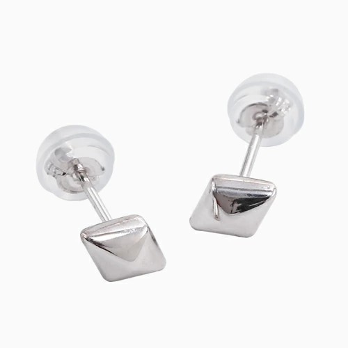10金 K10 10k K10WG ホワイトゴールド ピアス ダイヤ型ピアス スタッドピアス スタッズピアス 小さめピアス シリコンキャッチ式 ひし形 シンプル 両耳 軽い 軽量 小さい