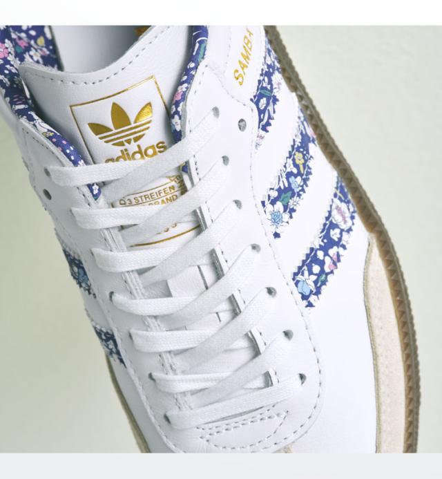 SAMBAアイデンティティーを残しつつ、LIBERTY社の WHARFDALEプリントをスリーストライプスに採用。