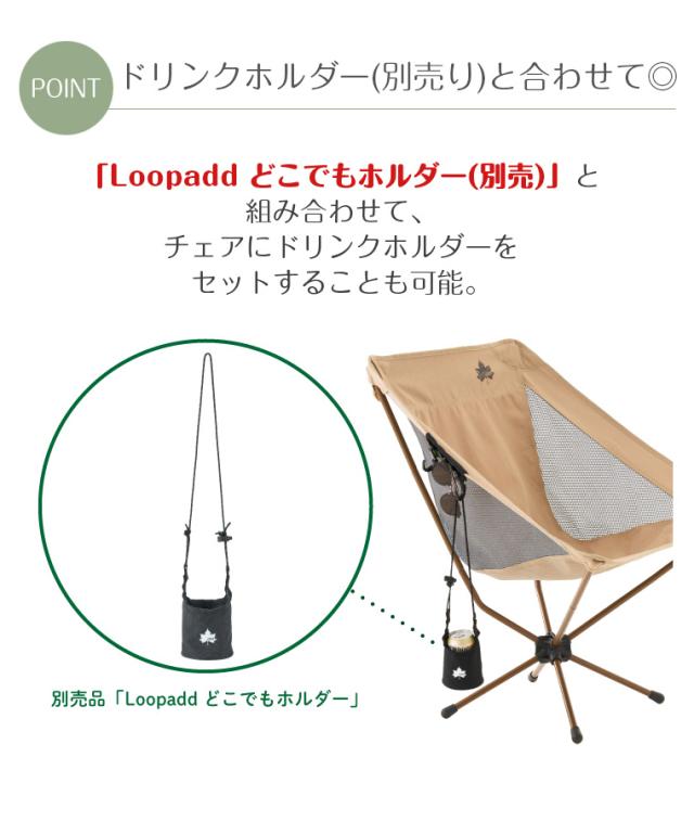 別売りの「Loopadd どこでもホルダー」と組み合わせて、チェアにドリンクホルダーをセットすることも可能。 総重量:(約)120g