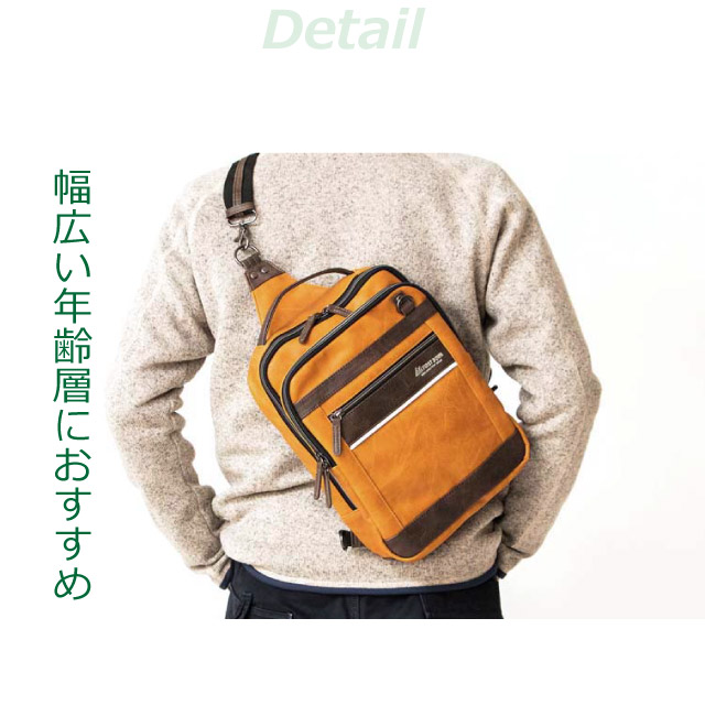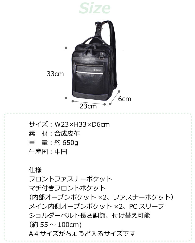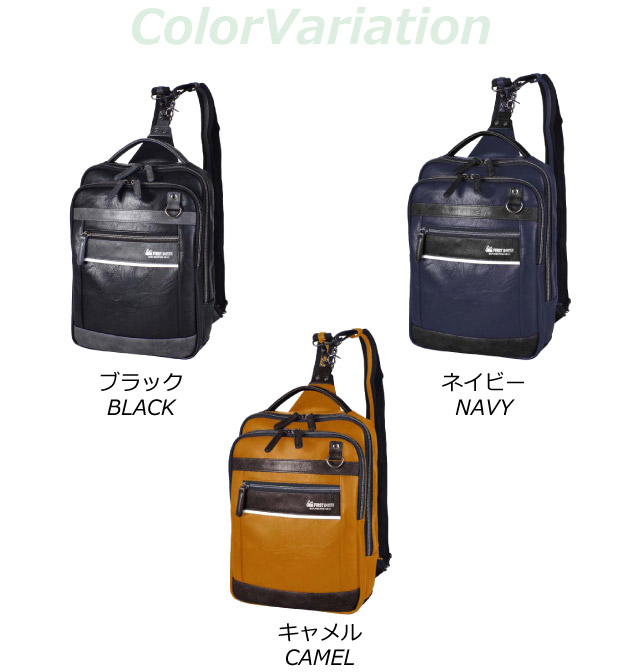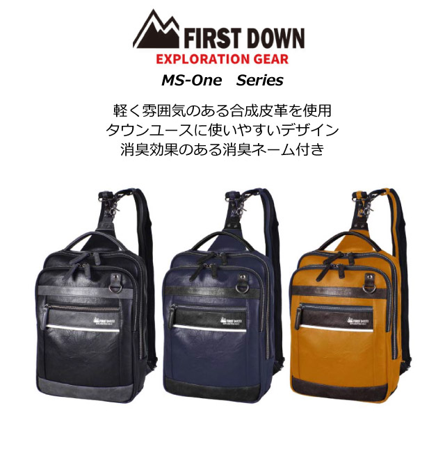 ![]() ![]() ![]() ![]() ![]() ![]() ![]() ![]() ・FIRST DOWN-EX ファーストダウンEX 雰囲気のある合皮を使用したボディバッグ。消臭ネーム付き。 手に持つ、肩に掛ける、背負うことができる3way仕様。 ショルダーベルトは脱着可、背面はクッション性のあるメッシュ仕様 PCポケット付き。