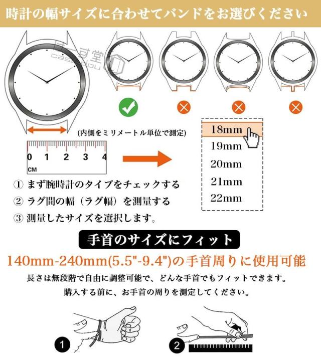 標準的なラグ幅 18mm/22mm/20mm のほとんどの従来の時計やスマートウォッチにフィットします。