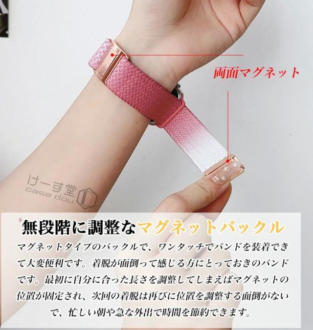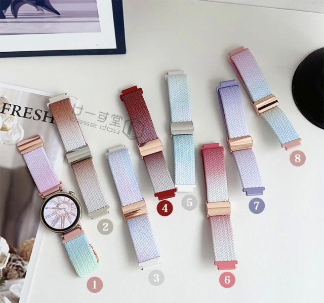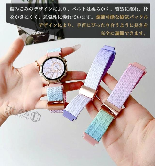 【ベルト幅 18mm 20mm 22mm 対応】スマートウォッチ バンド ベルト 時計 ラグ幅 18 mm 20 mm 22 mm Amazfit Bip GARMIN Galaxy HUAWEI WATCH GT4 GT 5 46mm 42mm 編み込み ウォッチ ベルト 交換 ストラップ バンド 替えベルト 腕時計バンド おしゃれ マグネット 磁気 虹色