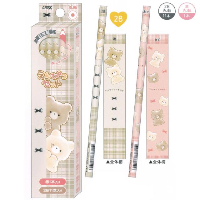 メール便 OK 12本セット 女の子 向け くまたろず 丸軸 赤鉛筆 1本付き クラックス おしゃれ で かわいい 文房具