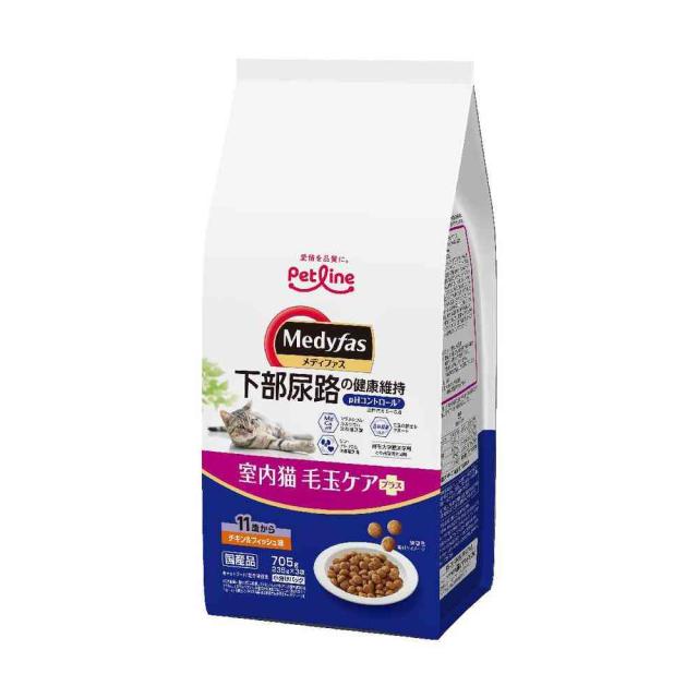 ペットライン メディファス 室内猫毛玉ケアプラス 11歳から チキン&フィッシュ味 705g