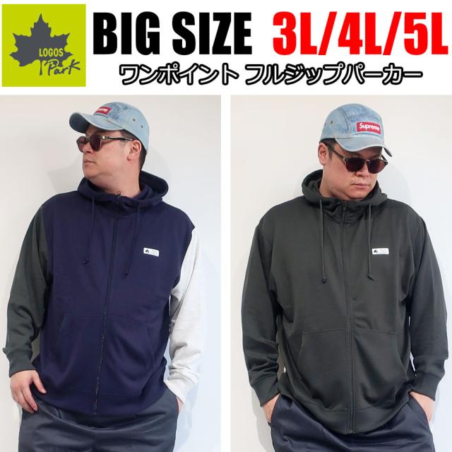 メンズ 大きいサイズ ブランド パーカー スウェット アウター マウンテンパーカー LOGOS Park ロゴスパーク 長袖 無地 シンプル 3L 4L 5L カーキ ブラック クレイジー オーバーサイズ ビックシルエット レディース ユニセックス
