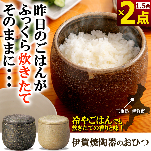 2点 ごはん 美味しさ 冷やごはん 炊きたて 香り 味 白米 レンジ 冷蔵庫 保温 (伊賀焼陶器のおひつ 2点) 黒柿釉 灰釉 伊賀焼 食事 食卓