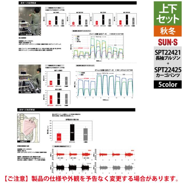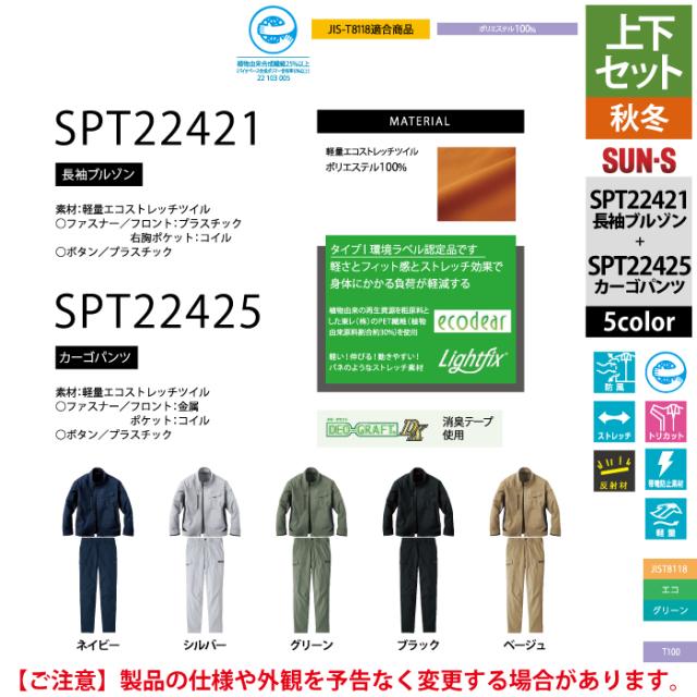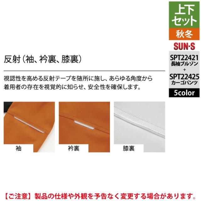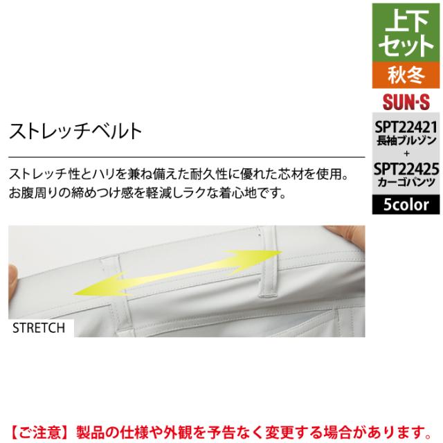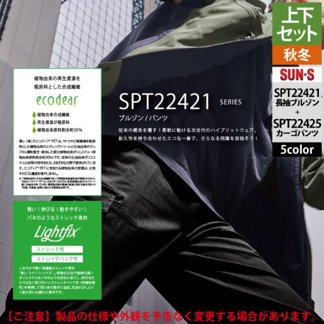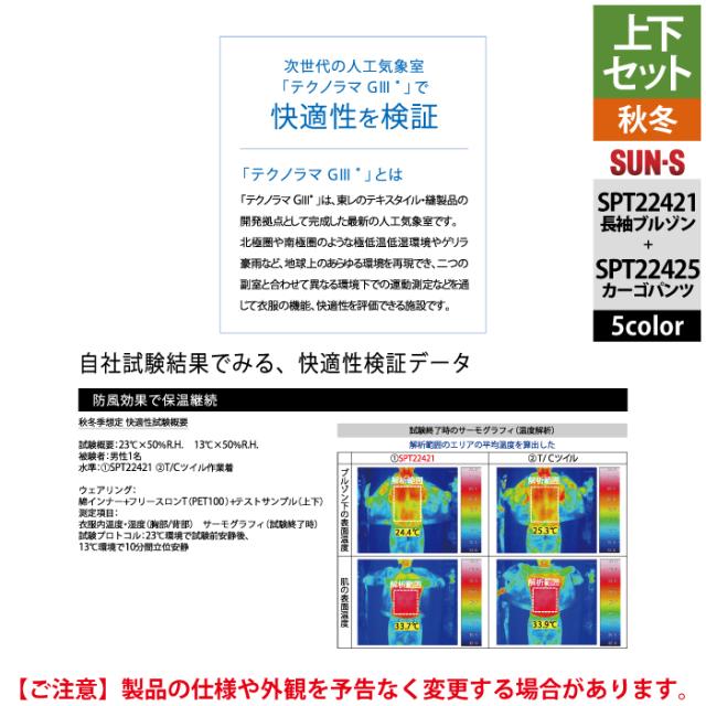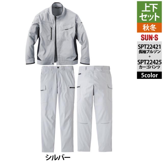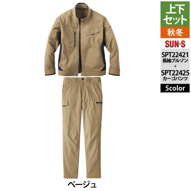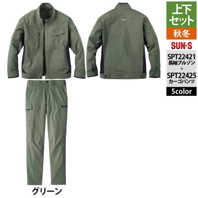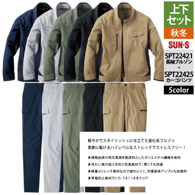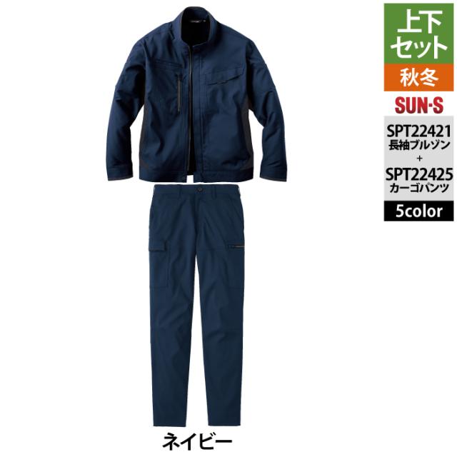 サンエス 作業服 上下セット SPT22421 長袖ブルゾンM-3L と SPT22425 カーゴパンツ 3S-3L 秋冬 作業ズボン 作業着