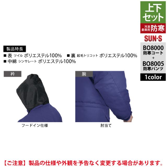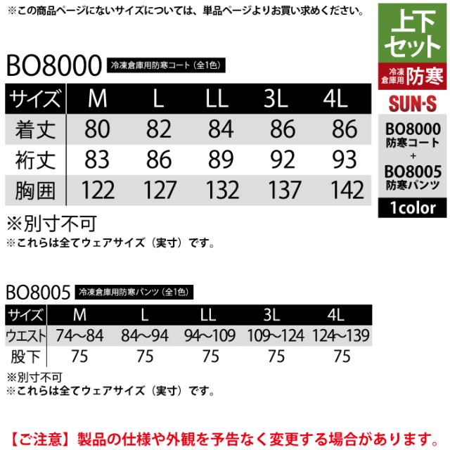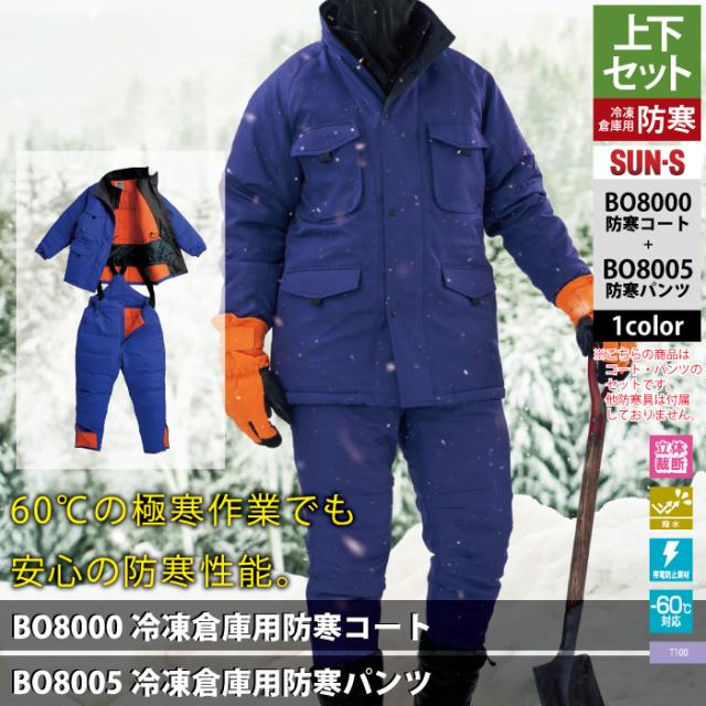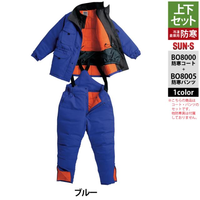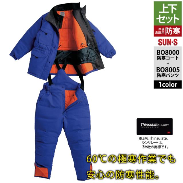 サンエス 防寒着 上下セット BO8000 冷凍倉庫用防寒コートM-3L と BO8005 冷凍倉庫用防寒パンツ M-3L 作業ズボン 作業着