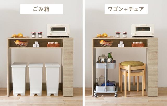 ゴミ箱はもちろん、チェアやストックなども収納できる万能スペースです。キッチン周りをすっきり整理することができます。