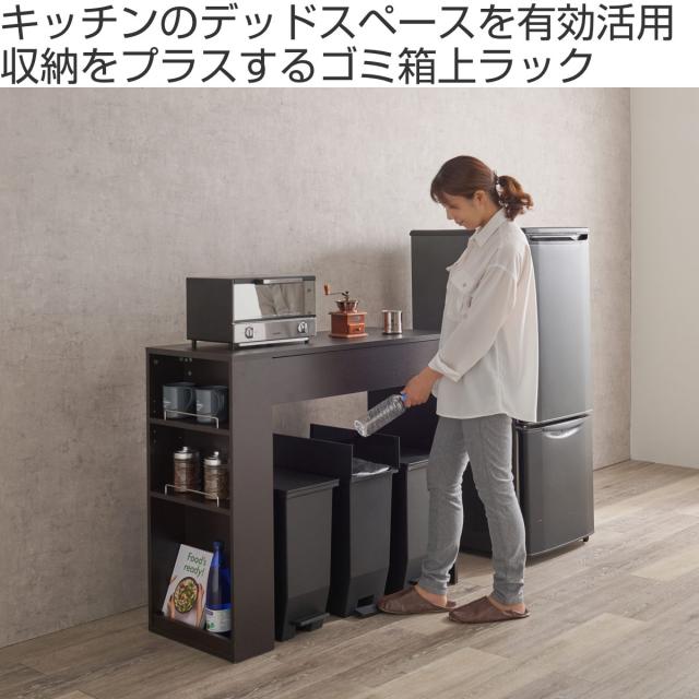 ゴミ箱上ラック 幅98.5cm 天板耐荷重20kg ( ゴミ箱上 収納 ラック 棚 ダストボックス ごみ箱 食器棚 家電収納 台所収納 キッチン収納 シンプル 可動棚 ナチュラル ホワイト ダークブラウン )