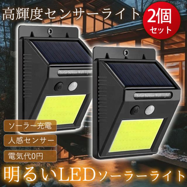 ソーラーライト 屋外 2個セット センサーライト 人感センサー 高輝度 照明 COB ソーラー発電 玄関灯 明るい 防犯 駐車場
