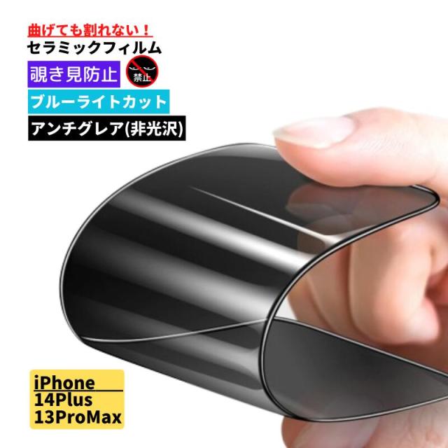 iPhone 14Plus iPhone 13ProMax 覗き見防止 ブルーライトカット セラミック アンチグレア フィルム 割れない 保護フィルム 反射防止 非光沢 指紋防止 全面保護 硬度9H ブルーライト アイフォン iPhone14Plus iPhone13ProMax 14プラス 13プロマックス