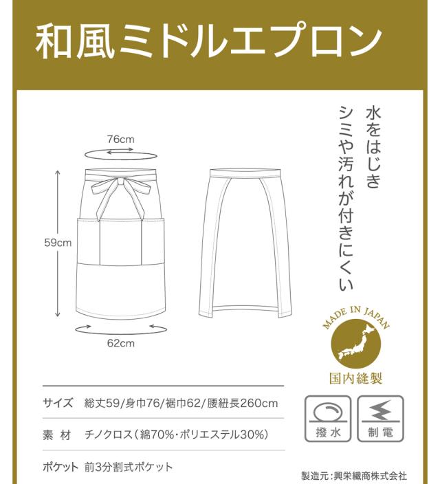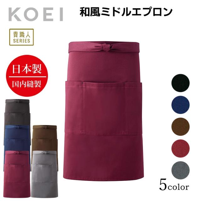 KOEI エプロン 日本製 和風ミドルエプロン ミドル丈 短い 前掛け 制服 ユニフォーム 飲食店 カフェ レストラン バー【送料無料】居酒屋 ソムリエ 高級エプロン メンズ レディース メイドインジャパン おしゃれでカッコいい定番エプロン agesugi_snk