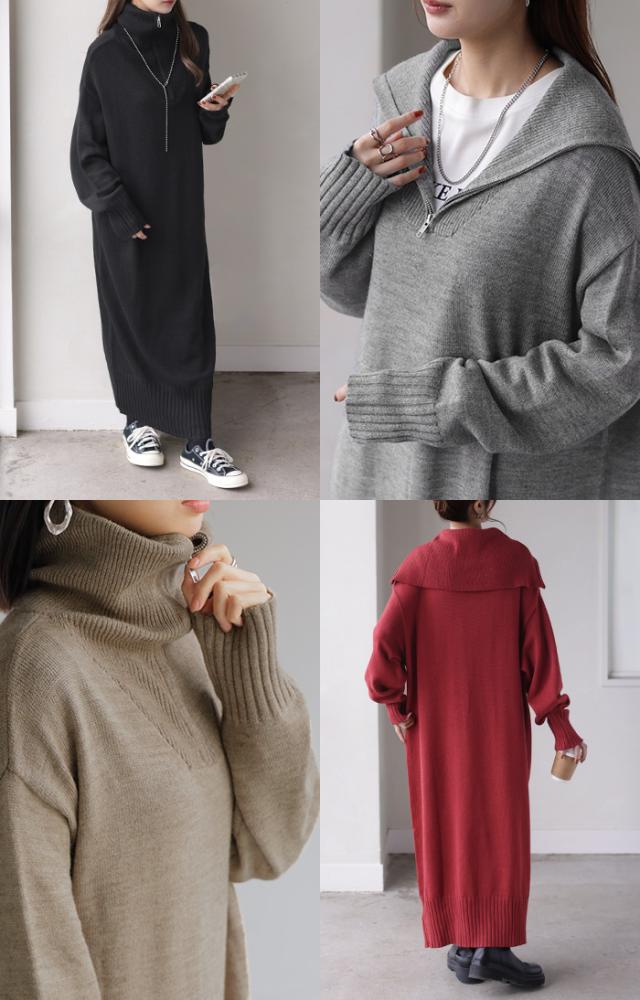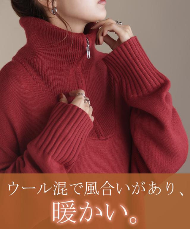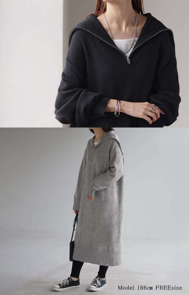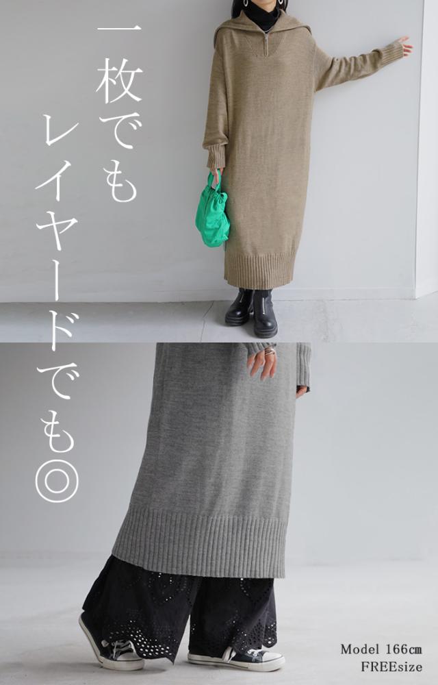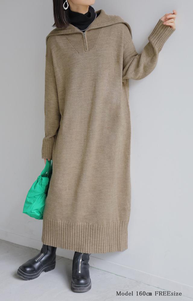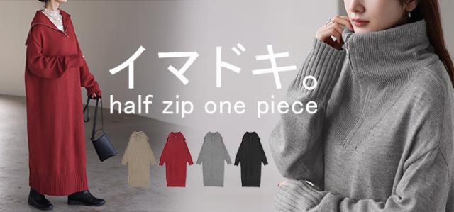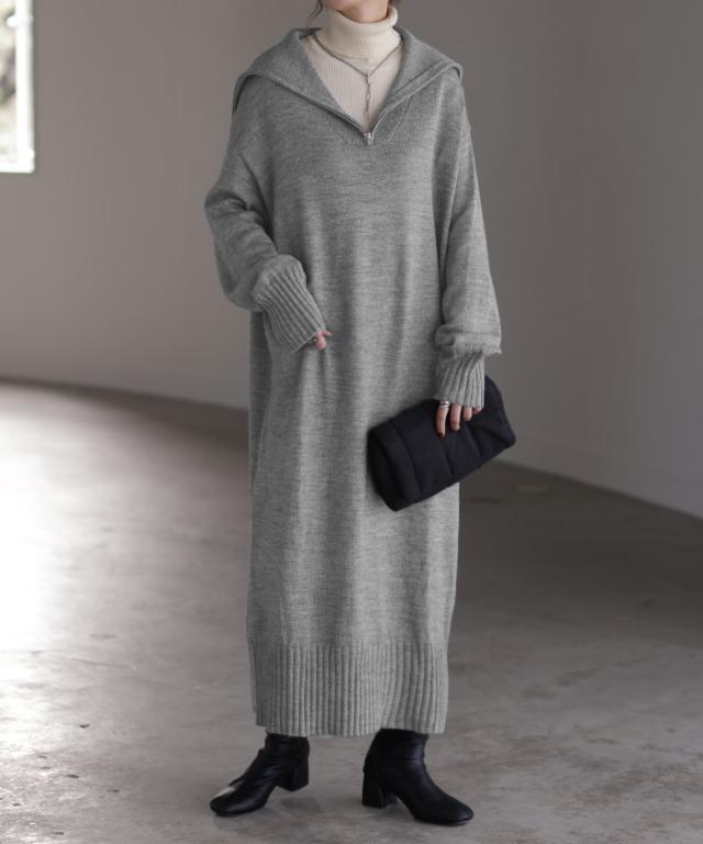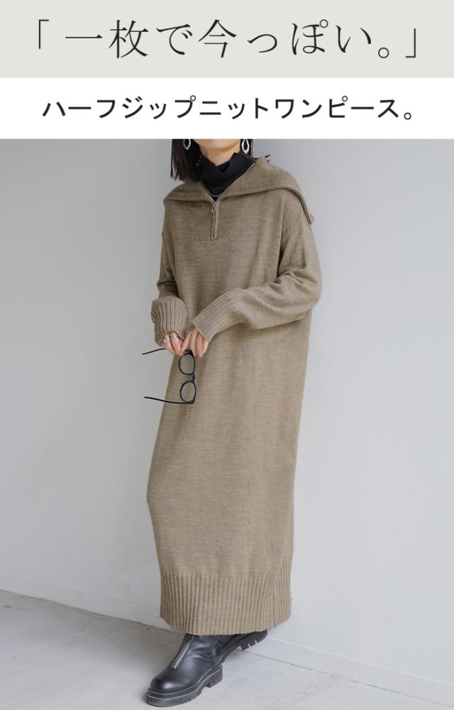 ふんわりと柔らかで心地よいハーフジップニットワンピースです。