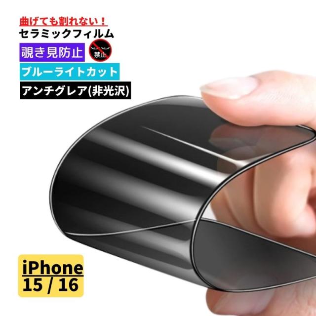 iPhone 15 iPhone 16 覗き見防止 ブルーライトカット セラミック アンチグレア フィルム 割れない 保護フィルム 反射防止 非光沢 指紋防止 全面保護 硬度9H ブルーライト アイフォン 15 16