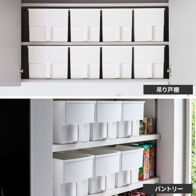 吊り戸棚やパントリーに隙間なく並べてスッキリ!食品のストックやお弁当箱・水筒・製菓用品等を仕分けしてスッキリ収納できます。