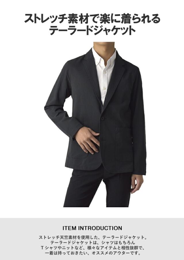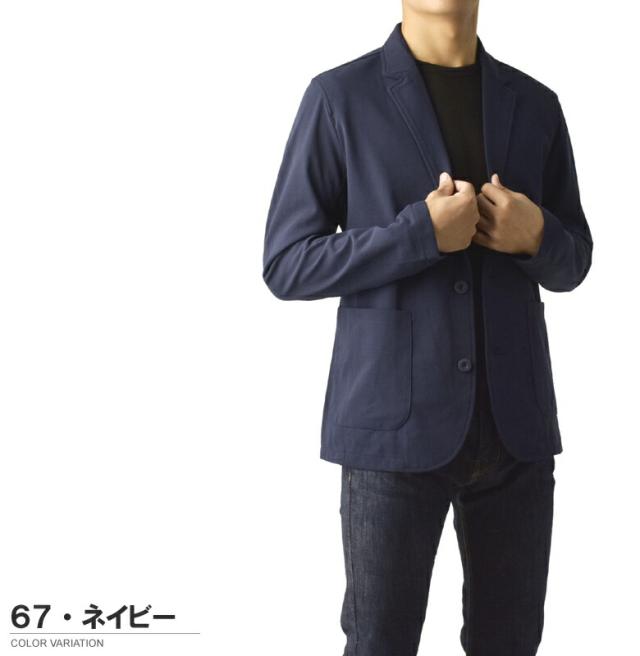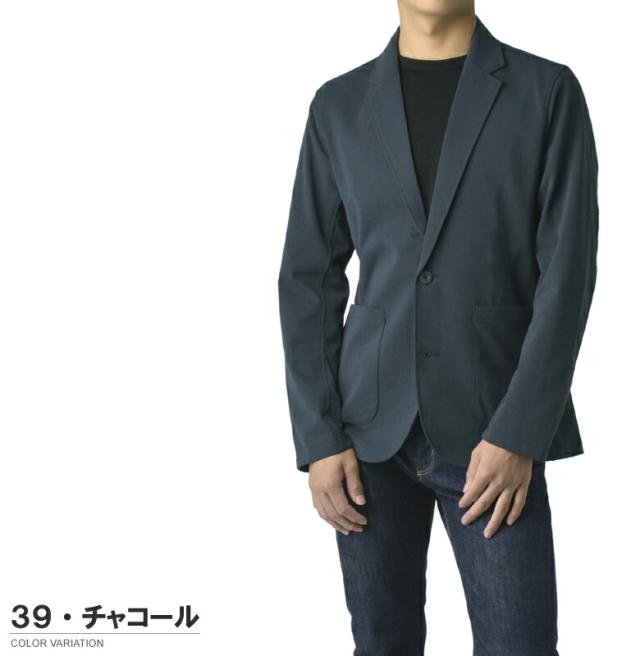 メンズ ストレッチ天竺 テーラードジャケット 2釦 レギュラーラペル ライトアウター ビジネス カジュアル カット素材【B3Q】